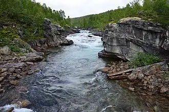 Gubbeltåga (Norwegian) or Gubbeltædno (Lule Sami)[1] is a river in Rana Municipality in Nordland county, Norway, which flows in a southern and southwestern direction. The 15-kilometre (9.3 mi) long river begins at the drainage divide on the Saltfjellet plateau in the north. On its direction mainly southwards, it meets and becomes a part of Randalselva, which has its beginning in the Norwegian-Swedish border regions. At Elvmøthei in the Dunderland Valley, Randalselva then meets Virvasselva and thus forms the beginning of Ranelva.