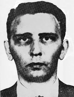 Podola moved to London on 21 May 1959. He assumed the alias of Mike Colato and pretended to be a gangster.[4] He broke into the house of an American model,[5] Verne Schiffmann in Roland Gardens,[6] and stole jewellery and furs worth £2,000.[1] He offered to return her possessions for £500,[4] but she notified the police who attempted to arrest Podola on 12 July 1959 in Kensington.[7] Podola shot one of the officers, Detective Sergeant Raymond Purdy, through the heart with a Radom 9mm semi-automatic pistol,[3] after he ran into a house at 105 Onslow Square.[6] He was later apprehended and Podola claimed he was beaten up by the police[8] and, as a result, lost his memory of events.[1] The police claimed that he was merely hit on the head when they broke down the door to his hotel room.[4]