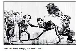 Another US American historian, David Healy,[38] rejects that thesis, and Fredrick B. Pike calls the allegation "absurd."[39] The economic development that accompanied and followed the war was so remarkable that Marxist writers feel justified in alleging that Chile's great military adventure was instigated by self-seeking capitalists to bring their country out of the business stagnation that had begun in 1878 since the war provided Chile with the economic means to come of age. Sater states that that interpretation overlooks certain important facts. The Chilean investors in Bolivia correctly feared that Daza, the Bolivian dictator, would use the war as an excuse to expropriate their investments. Among them were Melchor de Concha y Toro, the politically powerful president of Chile's Camara de Diputados, Jerónimo Urmeneta,[40]: 105 and Lorenzo Claro, a Chilean founder of the Banco de Bolivia and a prominent member of the National Party. A Santiago newspaper claimed that Melchor de Concha y Toro offered President Pinto 2,000,000 Chilean pesos to end the dispute and to return to the 1874 border. "In other words," writes W. Sater, "there were as many powerful interests opposed to helping the Compañía de Salitres as there were those seeking to aid the corporation."[41] Also, B. Farcau objects to the argument: "On the other hand, the sorry state of the Chilean armed forces at the outbreak of the war, as will be discussed in the following chapter, hardly supports a theory of conscious, premeditated aggression."[42]