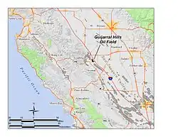 ![]() The Guijarral Hills Oil Field in central California. Other oil fields are shown in dark gray. | |