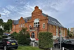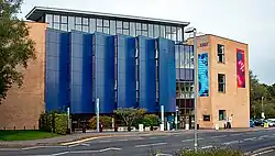 The school was founded as the Grant-Bellairs School of Dance and Drama in London in 1935. At the outbreak of World War II it relocated to Guildford.[5] From 1945 to 2010 the school was housed in the former St Nicholas parish hall and working men's club at Millmead Terrace.[6] In 1964, the school was renamed the Guildford School of Acting and Dance. In the 1990s, the word "Dance" was removed from the title, allegedly because former student Bill Nighy referred to it as the "Guildford School of Twirlies".[5] In 2009 the school became part of the University of Surrey and in 2010 moved into new purpose-built accommodation next to the refurbished Ivy Arts Centre, formerly the sports centre, on the Stag Hill campus.[5]