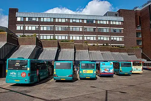 Guildford bus station serves the town of Guildford, Surrey, England. Also known as the Friary bus station, it is located on the east side of the Friary Shopping Centre. The bus station was opened on 2 November 1980, replacing the former bus stations on the Farnham Road and Onslow Street.[1]