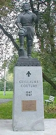 Guillaume Couture (January 14, 1618 – April 4, 1701) was a citizen of New France. During his life he was a lay missionary with the Jesuits, a survivor of torture, a member of an Iroquois council, a translator, a diplomat, a militia captain, and a lay leader among the colonists of the Pointe-Lévy (now named Lévis city) in the Seigneury of Lauzon, a district of New France located on the South Side of Quebec City.