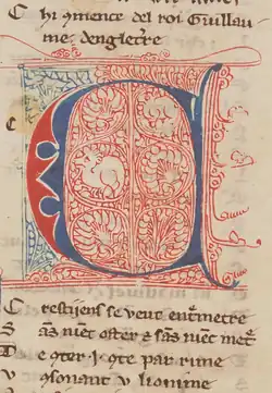 Guillaume d'Angleterre is a 12th-century[1][2] epic poem in Old French, consisting of 3310 lines.[3] The author identifies himself as Crestiiens on the first line of the poem,[4] which has caused a great deal of debate in the romance philological community as to whether the author is Chrétien de Troyes.