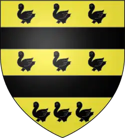 Blazon: D'or, à deux fasces de sable, accompagné de neuf merlettes du même (3, 3 et 3)