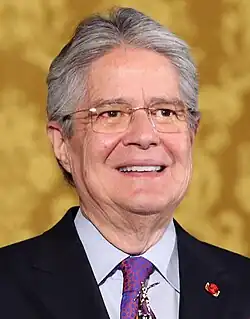 Guillermo Alberto Santiago Lasso Mendoza (Latin American Spanish: [ɡiˈʝeɾmo ˈlaso]; born 16 November 1955) is an Ecuadorian businessman, banker and politician who served as the 47th president of Ecuador from 2021 to 2023.[1][2]