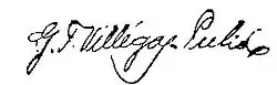 Guillermo Tell Villegas Pulido (28 July 1854 – 25 July 1949), was a Venezuelan lawyer, writer, journalist, and politician[1] who served as acting president of Venezuela.[2][3] A lawyer early in his career,[4] in 1876 he cofounded the school La Paz in Caracas.[1] Also dedicated to journalism, he founded the publications Alianza Literaria in 1876, La Mayoría in 1879, and Monitor in 1889.[5] Between 1879 and 1892[1] he held various political roles including Secretary of Interior of the Federal District,[1] secretary general in the government of President Antonio Guzmán Blanco, and a trial judge in Caracas.[1][5]