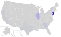 | New Jersey, New York City, San Francisco Bay Area, Los Angeles, Washington, D.C., Chicago, Houston, Philadelphia[4] | |