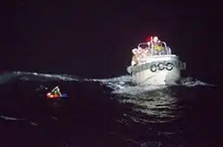 On 2 September, one crew member, a 45-year-old Filipino chief officer, was rescued by the Japanese Coast Guard.[1] On 4 September, a second crew member was found unresponsive in the water by the Coast Guard and died shortly after being rescued.[7] In the same area, several cattle carcasses and a life vest were also recovered.[8] A second survivor, a 30-year-old Filipino deckhand in a life raft, was rescued on the afternoon of 4 September just after 4:00 pm.[7] On 9 September, the Coast Guard suspended the search for survivors.[9] The tragedy led New Zealand to reconsider the exports of livestock by sea.[10]