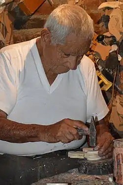 Popularly known as Sshinda or Chinda, the artisan continued this tradition, with his own workshop located behind his house.[1][3] He had a large family which works in some way with the family business even though most have other jobs. This included his wife, children and grandchildren.[3]