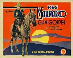 Gun Gospel is a 1927 American silent Western film directed by Harry Joe Brown and written by Marion Jackson and Don Ryan. It is based on the 1926 novel Gun Gospel by William Dawson Hoffman. The film stars Ken Maynard, Virginia Brown Faire, Romaine Fielding, Bob Fleming, J. P. McGowan and Jerry Madden. The film was released on November 6, 1927, by First National Pictures.[1][2][3]