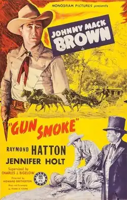 Gun Smoke is a 1945 American Western film directed by Howard Bretherton. This is the fifteenth film in the "Marshal Nevada Jack McKenzie" series, and stars Johnny Mack Brown as Jack McKenzie and Raymond Hatton as his sidekick Sandy Hopkins, with Jennifer Holt, Riley Hill and Wen Wright.
