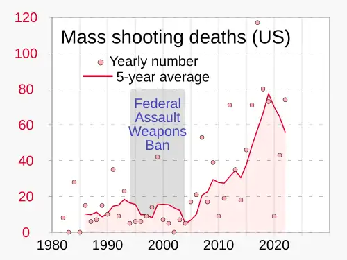 - ^ Follman, Mark; Aronsen, Gavin; Pan, Deanna. "US Mass Shootings, 1982–2023: Data From Mother Jones' Investigation". Mother Jones. Archived from the original on March 31, 2023. Retrieved March 31, 2023.