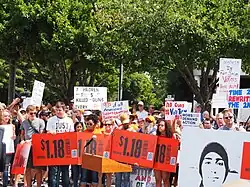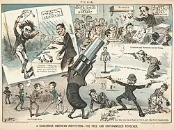 Though gun control is not strictly a partisan issue, there is generally more support for gun control legislation in the Democratic Party than in the Republican Party.[46] The Libertarian Party, whose campaign platforms favor limited government regulation, is outspokenly against gun control.[47]