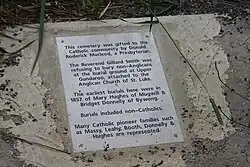 The Gundaroo Catholic Pioneer Cemetery is on the Sutton Road opposite the beginning of Back Creek Road a few kilometres south of Gundaroo, New South Wales, Australia.[1]