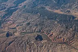 Elevated selenium in the Gunnison River Basin reflects the underlying geology. The Gunnison River Basin sits atop the Mancos Shale which is naturally elevated in selenium. The seleniferous soil the shale produces have come to the subsurface due to weathering of the rock and uplift.[18] Agricultural irrigation of seleniferous soils is one mechanism of selenium loading to the Gunnison River.[19] As farmland in the Gunnison River Basin is abundant, the amount of selenium reaches well over the normal concentration in areas from Grand Junction to the tributaries in the upper Gunnison River.[20] Some of the most concentrated tributaries of the Gunnison, namely the Uncompahgre,[21] load large amounts of selenium to the Gunnison River. Selenium concentrations in the River can be as high as 11 ppm during peak times.[22] Agricultural areas in the Gunnison River Basin are heavily farmed and provide large amounts of sediment during the growing months.[23] Concentrations of selenium in the Gunnison River rise in April until they peak in August due to irrigation drainage. These peaks in selenium concentrations coincide with the reproduction events of the Colorado pikeminnow and the razorback sucker.[24] High amounts of selenium are deposited into the yolk by the mother and juvenile fish eat algae that is highly concentrated with selenium in August.[25] Effects of high selenium concentrations in fish include reduced oxygenation rates and lowered total energy capacity used for movement and reproduction, with fitness consequences for migratory fish such as the Colorado pikeminnow.[26] Elevated selenium exposure can also cause malformations in adult fish.[26]