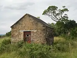 An unusual example exists in East Ayrshire, Scotland at Knockinglaw (now Knockenlaw mound); it is shown on the 1896 OS and still exists in very poor condition as of 2007. It is near Little Onthank on the outskirts of Kilmarnock, and was originally a tumulus in which urns had been found.[39] A powder magazine was built into this large pre-existing earth mound at an unknown date and the site is now in a housing scheme.
