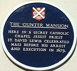 Gunter Mansion, 37–39 Cross Street, Abergavenny, Monmouthshire, Wales, is a house of the early 17th century. It was built around 1600 and mentioned in 1678 in the House of Commons of the United Kingdom as a place of public Catholic worship. It was the final place of prayer for Saint David Lewis before his execution on 27 August 1679.[1] It is a Grade II* listed building.[2]