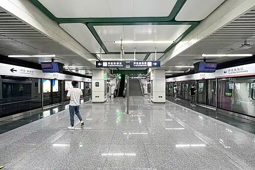 Guozhuangzi (simplified Chinese: 郭庄子站; traditional Chinese: 郭莊子站; pinyin: Guōzhuāngzǐ Zhàn) is a station on Line 14 of the Beijing Subway.[1] This station opened on May 5, 2013.[2]