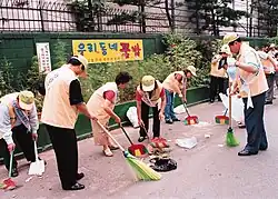 Textile manufacturing, dressmaking, and other labour-intensive industries declined after the 1990s and this affected regional development and became the cause of many problems.[5] Because of this, Guro District council has divided the district into four zones and has started developing each zone according to its characteristics in order to revitalise the economy of the area.[6] The four zones are: the Garibong Redevelopment Zone, Sindorim & Guro Stations area, the Gaebong Residential Area and the New Town Development on the Southwestern Outskirts.[7] After the reorganisation of the industrial structure in the late 1990s, more than 80% of I.T. companies settled in the area, creating the Guro Digital Industrial Complex. Meanwhile, many apartments were built replacing the old textile manufacturing factories to become a new, attractive residential area for south-west Seoul. The Development of Guro District's Four Zones is intended to be the centre for environmentally friendly residences, cutting-edge digital industry and logistics.