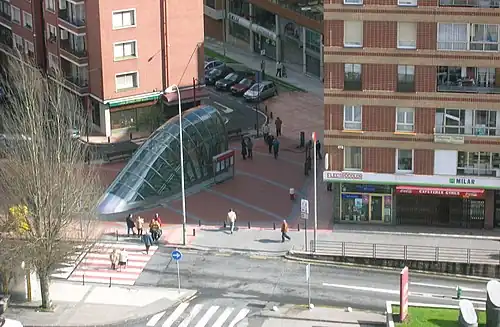 Gurutzeta/Cruces is a station on line 2 of the Bilbao metro. It is located in the neighborhood of Gurutzeta, in the municipality of Barakaldo. The station is located in near proximity to the University Hospital of Gurutzeta (also known as Hospital de Cruces in Spanish), the largest public healthcare facility in the Basque Country. The station was opened on 13 April 2002, as part of the opening of line 2.[3][4]