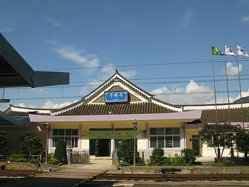 Guryegu station (Korean: 구례구역) is a KTX station in the city of Suncheon, South Jeolla Province, on the southern coast of South Korea. It is on the Jeolla Line.[1]