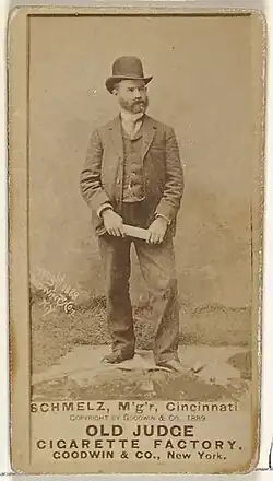Gustavus Heinrich Schmelz (September 26, 1850 – October 14, 1925) was an American manager in Major League Baseball for the Columbus Buckeyes (1884), Cincinnati Red Stockings (1887–89), and Columbus Solons (1890–91) of the American Association.[1] He was also the manager for the St. Louis Maroons (1886), Cleveland Spiders (1890),[2] and Washington Senators (1894–97) of the National League.