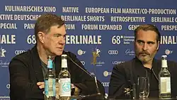 Van Sant and Joaquin Phoenix at the press conference of Don't Worry, He Won't Get Far on Foot (Berlin Film Festival 2018)
