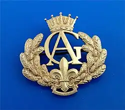The Gustav Adolf medal consists of Prince Gustaf Adolf's crowned name cipher in a granite wreath with the Scout lily, executed in gilded silver.[1][2]
