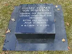 Gustav Eduard von Hindersin (18 July 1804 – 23 January 1872) was a Prussian general from Wernigerode (now in Saxony-Anhalt). Until 1864, when he was ennobled, his name was Gustav Eduard Hindersin.