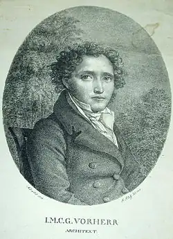 Gustav Vorherr, full name Johann Michael Christian Gustav Vorherr (19 October 1778 - 1 October 1847) was a German architect and publicist. In addition, he was the chief construction officer of the young Kingdom of Bavaria. He officiated a. as board member of the Royal Building Trade School in Munich, campaigned for the “protection of antiquities” as early as the 1820s and was thus a pioneer in the preservation of historical monumentsin Bavaria. As chairman of the Bavarian State Beautification Association he founded, he pioneered the competition "Unser Dorf hat Zukunft", which is still taking place today. As a publicist for the monthly newspaper for construction and state beautification in Bavaria, he provided sustainable models for public buildings throughout Bavaria.[1][2]