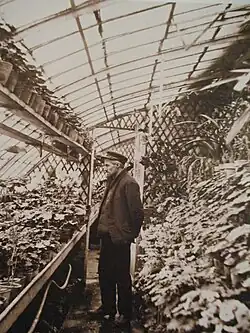 In 1881, Caillebotte acquired a property at Petit-Gennevilliers, on the banks of the Seine near Argenteuil.[26] His brother Martial married in 1887,[4] and Gustave moved to the Petit-Gennevilliers property permanently in 1888.[26] Caillebotte's property had a shipyard for him to design his own yachts. The move also put him in proximity to regattas and he won several races with his boat, Roastbeef.[4] He ceased showing his work at age 34 and devoted himself to gardening and to building and racing yachts, and he spent much time with his brother, Martial, and his friend Auguste Renoir. Renoir often came to stay at Petit-Gennevilliers, and engaged in far-ranging discussions on art, politics, literature, and philosophy. Caillebotte was a model for Renoir's 1881 painting, Luncheon of the Boating Party. Although he never married, Caillebotte appears to have had a serious relationship with Charlotte Berthier, a woman eleven years his junior and of the lower class, to whom he left a sizeable annuity.[27]