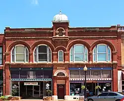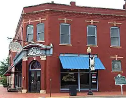 The Guthrie Historic District (GHD) is a National Historic Landmark District encompassing the commercial core of Guthrie, Oklahoma, US. According to its National Historic Landmark Nomination it is roughly bounded by Oklahoma Avenue on the north, Broad Street on the east, Harrison Avenue on the south, and the railroad tracks on the west; it also includes 301 W. Harrison Avenue.[3] The National Historic Landmarks Program on-line document describes the boundaries as "14th Street, College Avenue, Pine Street and Lincoln Avenue. One building, the Logan County Courthouse, is at 301 E. Harrison Avenue, outside the main boundaries of the GHD,"[4] This article relies on the former source, which is more detailed. According to the 1998 nomination, the proposed district covered 31 acres (13 ha). The nomination included 112 resources, classed as 69 contributing buildings, 38 non-contributing buildings, 1 non-contributing structure and 3 noncontributing objects. It was declared a National Historic Landmark in 1999 for its historic significance as the first capital of the Oklahoma Territory and of Oklahoma.[2][5]