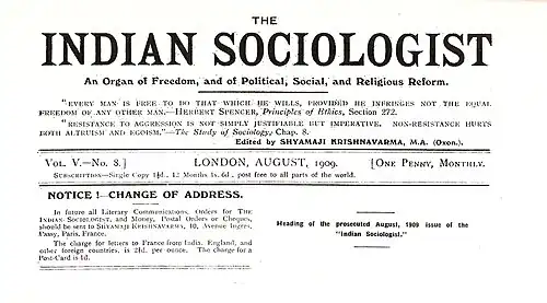 The Indian Sociologist was an Indian nationalist newspaper edited by Shyamji Krishnavarma. When Krishnavarma left London for Paris, fearing repression by the authorities, the printing of the newspaper was first taken over by Arthur Fletcher Horsley. However, he was arrested and tried for printing the May, June and July issues. (He was tried and sentenced on the same day as Madan Lal Dhingra, who was convicted of the assassination of Sir William Hutt Curzon Wyllie). At Horseley's prominent trial the Lord Chief Justice, Lord Alverstone, indicated that anyone printing that sort of material would be liable for prosecution. Nevertheless, Aldred, as an advocate of the free press, published it, bearing his own name. The police obtained a warrant and seized 396 copies of the issue. At the trial the prosecution was led by the Attorney General, Sir William Robson, at the Central Criminal Court. Robson highlighted parts of TIS which Aldred had himself written, particularly focussing on a passage which touched on the execution of Dhingra:
