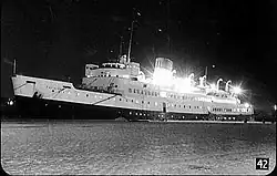 Meanwhile, the Foreign Office had fixed Monday 28 May as the date for confronting Maclean with their suspicions. Philby notified Burgess who, on Friday 25 May, bought two tickets for a weekend channel cruise on the steamship Falaise.[172] These short cruises docked at the French port of St Malo, where passengers could disembark for a few hours without passport checks.[173] Burgess also hired a saloon car, and that evening drove to Maclean's house at Tatsfield, Surrey, where he introduced himself to Maclean's wife Melinda as "Roger Styles".[n 12] After the three had dined, Burgess and Maclean drove rapidly to Southampton, boarding Falaise just before its midnight departure–the hired car was left abandoned on the quayside.[172]