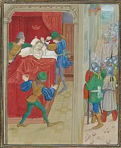 Guy bequeathed 20,000 bezants towards the construction of the cathedral of St Nicholas in Limassol.[3] A detailed inventory of his belongings survives him; although his main residence, in addition to his three rural estates,[4] was not furnished in an opulent manner,[5] – Turkish carpets and cushions typical of the Latin orient replacing courtly tapestries – he still indulged in hunting, the favourite pastime of the nobility, having three falconers in his service, a modest number for the time.[6][7][8]