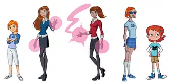 ![]() Gwen Tennyson as depicted in (from left to right) Ben 10 (2005), Ben 10: Alien Force, Ben 10: Ultimate Alien, Ben 10: Omniverse, and Ben 10 (2016). | |