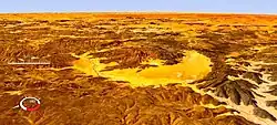 ![]() Landsat image of the Gweni-Fada crater; screen capture from NASA World Wind | |
