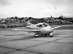 The Aircar was initially fitted with a 95 hp (71 kW) Pobjoy Niagara II engine, a small diameter radial. The driveshaft of the two-bladed propeller was offset above the engine center by spur reduction gearing. An exhaust pipe led back over the cabin and the upper wing. The cabin windscreen was ahead of the wing leading edge but the glazing extended aft to beyond the trailing edge, pilot and passenger sitting side by side under it. Entry was by a pair of forward hinged, car type doors, one on either side. The all-metal, stressed skinned fuselage bulged rapidly behind the engine and was roughly circular in cross section between the wings. Seen from the side, the fuselage depth decreased only gently, but in plan it narrowed rapidly, ending in a vertical knife edge. The tailplane, mounted on the centerline, had a curved leading edge and carried elevators. The deflection range of these was limited to an overall 8.5°. The original fin had near straight leading edges both above and below the fuselage, terminating in a vertical, rudderless trailing edge carrying only a trim tab below the centerline.[1][2][3]