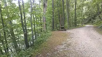 ![]() Westbound, approaching the Windsor Mill Road trailhead | |