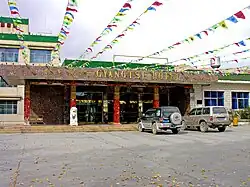 Gyantse Hotel is one of the 43 Aid Projects to Tibet established in 1984 and invested by Shandong Province.[4] In June 1986, the state invested 6.4 million RMB to upgrade Gyantse Hotel, and reopened in 1988. In November 1998, Gyantse Hotel invested 2.3 million RMB to renew and renovate 102 rooms, so as to make the hardware reach the standard of a three-star hotel.[5]