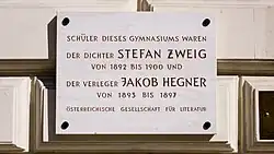 In 2007, a group of students and their teacher organised a school project, called Erinnern [1] (German for "Remember"), in order to research the fates of former Jewish students. Furthermore, the school also installed a commemorative plaque, honouring and remembering all the students and teachers who were victims of Nazism.