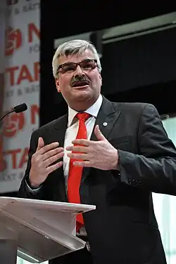 Håkan Juholt (born 16 September 1962) is a Swedish politician who was Leader of the Social Democrats from 2011 to 2012.[1][2] He was member of the Swedish parliament from 1994 to 2016,[3] representing Kalmar County. Juholt served as Sweden's Ambassador to the Republic of Iceland from September 2017 to August 2020,[4] and has served as Ambassador to the Republic of South Africa since September 2020.[5]
