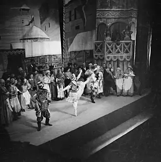Blum was anxious for a successful maiden season in Monte-Carlo so as to attract the attention of London and New York impresarios.[23] The company opened at the Théâtre de Monte-Carlo on 4 April 1936.[42] As well as some of the classics there were two new ballets by Fokine: Don Juan and L'Épreuve d'amour, the latter featuring Kirsova in a "memorable" creation of Papillon in a shimmering butterfly costume designed by the French artist André Derain.[22] Kirsova's contribution was much hailed, one critic declaring that "Madame Kirsova won the delighted approval of an enthusiastic audience".[43] The Monte-Carlo season was "one of the most successful on record".[44]