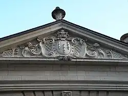 A new portal is created in rue du Chapitre in 1730. It is home to the keeper's dwelling, and has a pediment bearing the arms of family La Bourdonnaye, and a monogram of their initials. The pediment was wearing gold letters engraved in marble, the words “Hôtel de Blossac”.