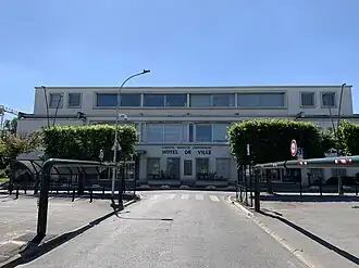In the mid-1930s, the town council led by the mayor, Henri Duquenne, asked André Lurçat to design a modern town hall. Implementation of the project was delayed by the Second World War and lack of finance. After the war, the new mayor, Eugène le Moign, asked Lurçat to update his design. The new building was designed in the modern style, built in concrete and glass and was officially opened by a later mayor, Robert Fregossy, in 1967.[6][7][8]