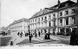 - ^ The old building became the home of the Bibliothèque Municipale de Tours.[3] On 19 June 1940, a few days before the fall of Paris, a major fire caused by German artillery from across the Loire burned the old building to its shell, along with much of the city's historical collections. The remaining structure was demolished the following November, leaving only a single lintel, with "Hôtel de ville" carved on one side, and "Bibliothèque" on the other.[2]