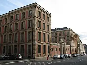 ![]() Façade and entrance gate as seen in 2011. Just passed the building (in the darker colour) is the Hôtel des Affaires Étrangères et de la Marine also built by Berthier to host the archives of the French Royal Navy | |