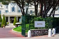 In 1931, when Antoine (Antonio) Sella died, the running of the hotel passed to his son André (Andrea) who developed the hotel to a new level. The Kennedy family summered here in 1938 when John F. Kennedy was 21 years old.[3] Guests included Marlene Dietrich, Orson Welles, the Duke and Duchess of Windsor, Winston Churchill and Charles De Gaulle.[3] Elizabeth Taylor and Richard Burton conducted an affair and honeymooned there.[4] The hotel has traditionally been a particular favourite of film stars, especially during the annual Cannes Film Festival.[5]