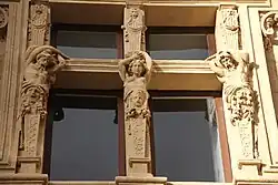 In the courtyard, some of the telamon windows can be attributed to Nicolas Bachelier. Those of the ground floor belong to another hand and date from the late sixteenth century. On the first floor, the figures supporting the entablatures of the windows seem to be straining under the weight. On the ground floor, the hybrid figures with lion feet or on pilasters show exceptional diversity as well as great anatomical and psychological realism. Imprisoned in the stone, they bear their burden with dignity and solemnity.[1]
